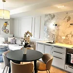 設備の整った台所で食事を楽しめます。 Downtownapartmentsアパートはジェシュフ・ジャションカ空港から車で45分ほどのところにあります。